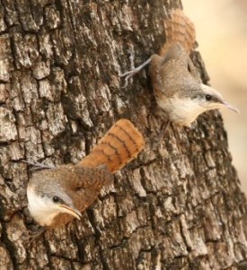 Although beautifully audible, the Canyon Wren is quite secretive and one of the Hill Country birds who still presents a few mysteries to bird watchers and scientists. We may hear his song, and catch a glimpse of him perched on a steep rocky wall or on the ubiquitous outcroppings of limestone in the area, but not much is known about the breeding habits of these little songsters.