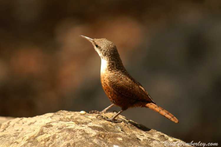 * The Canyon Wren can climb up, down, and across rocks. A low center of gravity, large feet, and sharp claws aid in such locomotion.
