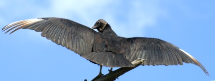 Aside from that unique service to society, the Vulture, especially the Turkey, isn’t easily surpassed in soaring expertise. The closest might be the Eagle, which it resembles in flight. The Turkey Vulture is the champion -- stretching its six-foot wingspan to capture the slightest updraft and cruise our skies with ease. For the Black Vulture, soaring is a tougher job, resulting in more flapping.