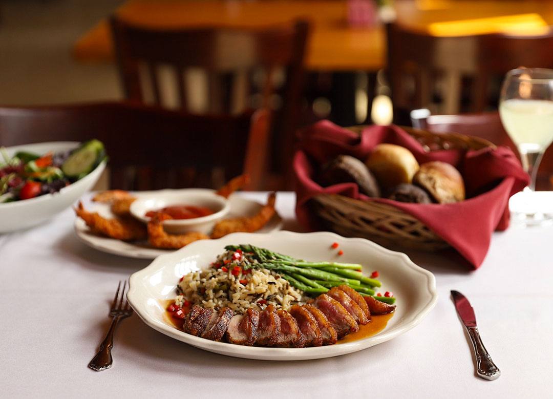 offers fresh Americana cuisine with a Central Texas twist. Favorites include tender Chicken Fried Steak with rich gravy, perfectly seasoned Salmon, and the Warm Herbed Goat Cheese Salad. Scratch-made with local ingredients, the menu also features steaks, pasta, seafood, and gluten-free options—all served in a historic Blanco square setting.