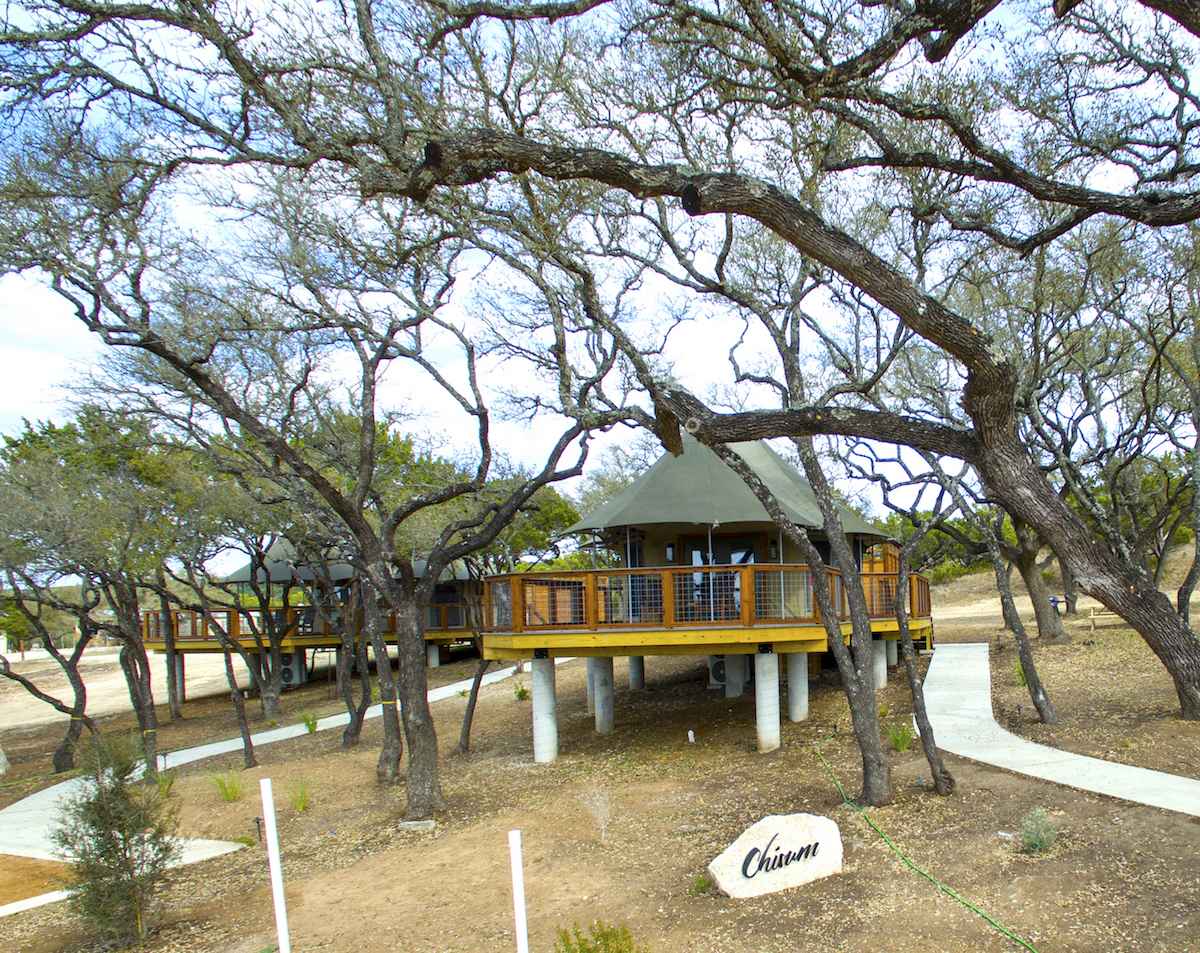 As guests make the final turn to their weekend destination, they can almost hear the rhythmic beat of African drums beckoning them to the magic of Spoon Mountain Glamping. Owners Ken and Yvette Strange carefully researched the world of safari tents to create their unique vacation rentals and chose Bushtec Safari tents and Banks Chisum to bring their dream to fruition. Set on a three-acre property shaped like an upside-down spoon, Spoon Mountain Glamping offers guests a choice of three tents, each sitting on an expansive deck overlooking Mount Baldy and Mount Edith. Within the canvas walls of each structure are all the amenities of a traditional guest room and more. Intricate design details include South African influenced decor mixed with Texas Hill Country charm. Each tent offers an outdoor sitting area and private stone soaking tub. A common area called “The Boma," offers guests outdoor amenities. Guests can enjoy massage and facials from the nearby Med Spa, also owned by the Strange family.