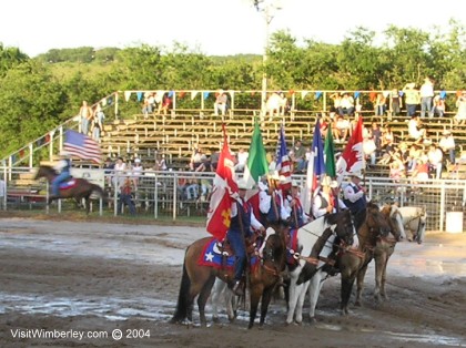 The colorful Rodeo opening ceremonies begin at sunset. www.VisitWimberley.com © 2004 All rights reserved